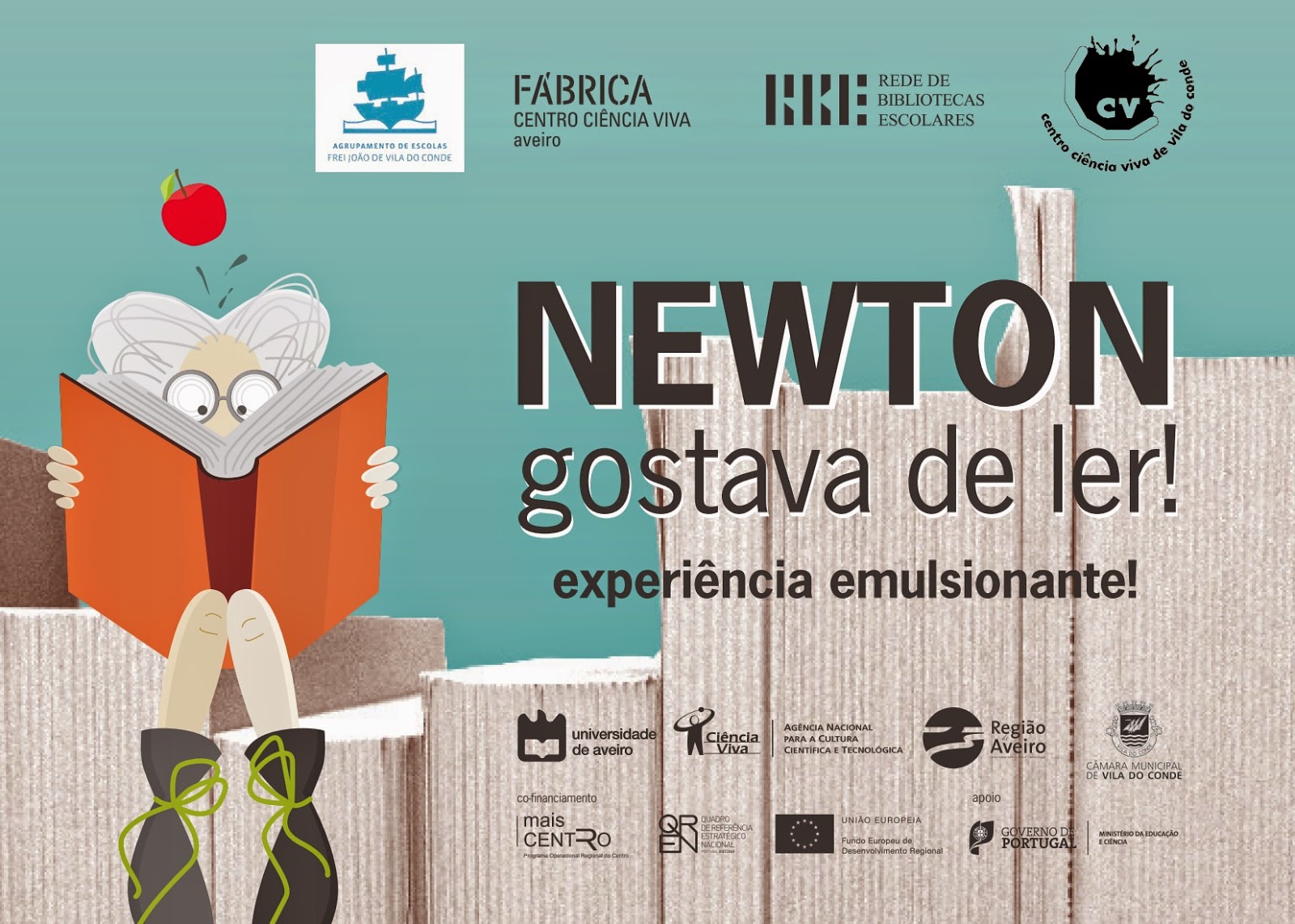 O dia 9 de outubro de 2014 marcou o início da implementação do projeto Newton gostava de ler! nas Bibliotecas Escolares do concelho de Vila do Conde, assim como na Biblioteca Municipal José Régio. Este foi o dia da apresentação do projeto pela Fábrica Centro de Ciência Viva de Aveiro, que lançou este desafio, também apoiado pela Rede de Bibliotecas Escolares.